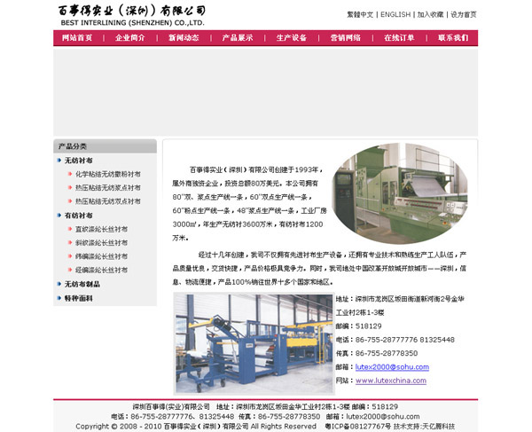 紡襯布網站建設公司,做網站優化關鍵詞排名SEO,營銷型,手機網站建設,響應式,品牌型,電商/門戶,紡襯布外貿型網站建設. 百事得實業(深圳)有限公司創建于1993年,屬外商獨資企業,投資總額80萬美元。