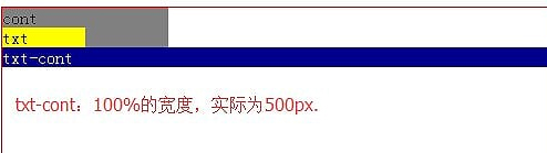 .wrap{ position: relative; width: 500px; height: 300px; border: 1px solid red; } .cont{ background: gray; width: 150px; overflow: hidden; } .txt{ background: yellow; width: 50%; height: inherit; } .banner{ background: pink; width: 50%; height: inherit; } .txt-cont{ position: absolute; background: darkblue; width: inherit; color: white; }